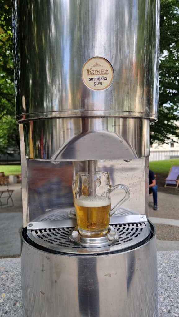 Po raziskovanju podzemlja smo obiskali žalsko Fontano piva Zeleno zlato.