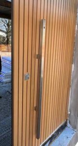 Poiščite popolno držalo za vaša nova lesena vhodna vrata. Po meri naredimo tudi leseno držalo, poljubnih oblik. Prebarvana z 2-komponetnto barvo za dolgo obstojnost.