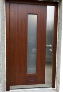 Po naročilu lesena vhodna vrata ojačamo z inox zaščito, ki preprečuje praske in ohranja brezhiben videz vašega doma.