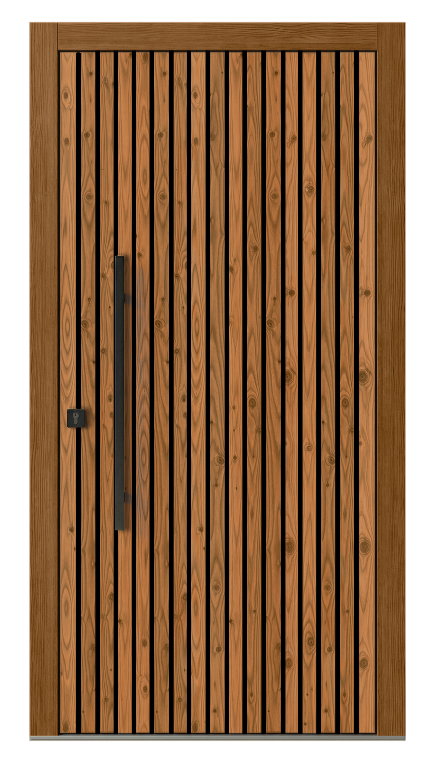 Lesene fasade so trenutno eden najbolj priljubljenih trendov. Masivne letvice na zunanji strani vrat še posebej izstopajo. Stranke nam jih same dostavijo. Mi jih nato natančno odrežemo, pobrusimo in prilagodimo. Možna je poljubna postavitev – prečno, pokončno, diagonalno ali asimetrično. Vi povejte, mi pa uredimo. Tako vrata popolnoma dopolnjujejo vašo obstoječo fasado.